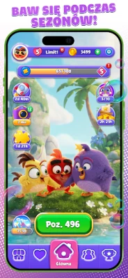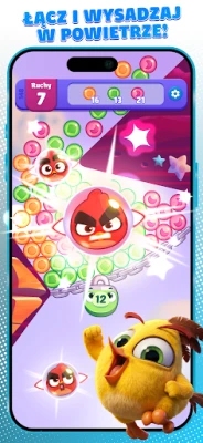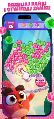 Sercem rozgrywki jest intuicyjne łączenie i efektowne eksplodowanie baniek. Stukaj w grupy pasujących bąbelków, aby wyzwolić ich moc, a im więcej połączysz, tym większy spektakl! Twórz legendarne wzmocnienia: połącz cztery bańki, by przywołać Czerwonego; dwóch Czerwonych uformuje Chucka, a dwóch Chucków stworzy potężnego Bombę. Te ukochane postacie z serii Angry Birds nie tylko towarzyszą Ci w tej baśniowej podróży, ale także pomagają w pokonywaniu przeszkód. Wszystko to dzieje się w otoczeniu olśniewających animacji i tętniących życiem, kreskówkowych scenerii, które zachwycają na każdym kroku.