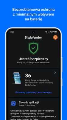 Zapewnij swojemu smartfonowi Androida bezkompromisową tarczę bezpieczeństwa dzięki Bitdefender Mobile Security & Antivirus. To wielokrotny triumfator testów AV-Test, uhonorowany siedmiokrotnie prestiżowym tytułem „Najlepszego Produktu Bezpieczeństwa Android". Nasza aplikacja to kompleksowe rozwiązanie, które chroni przed całym spektrum cyfrowych zagrożeń, oferując spokój ducha i pewność, że Twoje dane są bezpieczne. Przekonaj się o jej niezawodności, korzystając z pełnej funkcjonalności przez pierwsze 14 dni bez żadnych opłat.