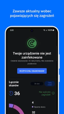 Rdzeniem Bitdefender Mobile Security & Antivirus jest zaawansowany skaner antywirusowy, który z 100% skutecznością wykrywa i usuwa wirusy, malware, adware oraz ransomware, analizując aplikacje i pliki w czasie rzeczywistym. Ochrona sieciowa skutecznie broni Twojej tożsamości i finansów przed phishingiem oraz oszustwami online, a funkcja Scam Alert skanuje podejrzane linki w wiadomościach i czatach. Zupełnie nowa usługa Call Blocking inteligentnie blokuje połączenia spamowe i oszukańcze, ucząc się z globalnej społeczności użytkowników. Dodatkowo, innowacyjna Detekcja Anomalii Aplikacji monitoruje zachowania aplikacji, wychwytując zagrożenia zanim zdążą się uformować, a Ochrona Tożsamości ostrzeże o wyciekach danych logowania.