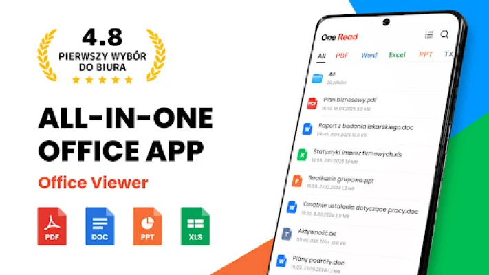 Masz dość cyfrowego bałaganu i problemów z otwieraniem dokumentów w różnych formatach na telefonie? Poznaj Czytnik wszystkich dokumentów – kompleksowe rozwiązanie, które zmienia sposób, w jaki zarządzasz plikami. Ta intuicyjna aplikacja bez trudu radzi sobie z najpopularniejszymi formatami pakietu Office, takimi jak PDF, DOCX, XLSX, PPT oraz TXT. Czytnik wszystkich dokumentów automatycznie skanuje zawartość Twojego urządzenia, porządkując dokumenty w logiczne foldery, abyś zawsze mógł szybko znaleźć to, czego potrzebujesz, w jednym przejrzystym miejscu.