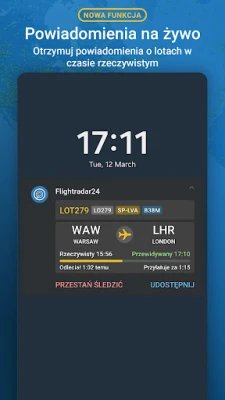 Dzięki Flightradar24 uzyskasz dostęp do bogactwa informacji. Zobacz trójwymiarową perspektywę z kokpitu, prześledź historię lotów w funkcji odtwarzania, a także dowiedz się o szczegółach trasy, szacowanym czasie przylotu, faktycznym starcie, prędkości czy wysokości. Monitoruj status przylotów i odlotów na lotniskach, sprawdzaj opóźnienia, dostępne maszyny na płycie lotniska oraz aktualne prognozy pogody. Wyszukuj loty po numerze, lotnisku lub linii lotniczej, a także filtruj wyniki według preferencji, takich jak wysokość, prędkość czy typ samolotu. Dodatkowo, użytkownicy Wear OS mogą wygodnie przeglądać pobliskie samoloty i ich podstawowe dane bezpośrednio na zegarku.