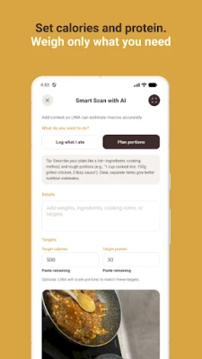 Sercem LINA jest rewolucyjny skaner posiłków zasilany sztuczną inteligencją, który pozwala błyskawicznie oszacować kalorie i makroskładniki po prostu robiąc zdjęcie jedzenia. Rejestrowanie spożycia nigdy nie było łatwiejsze – czy to przez zdjęcie, głos, czy szybki wpis tekstowy, LINA na bieżąco informuje Cię o dziennym limicie kalorii i pozostałej puli białka. Niezależnie od tego, czy preferujesz indywidualnie tworzone treningi, czy potrzebujesz spersonalizowanego planu generowanego na podstawie Twoich celów i dostępnego sprzętu, LINA dostosuje się do Ciebie, oferując elastyczność i motywację.