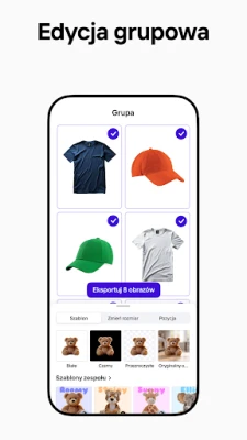 Z Photoroom zyskujesz pełną kontrolę nad spójnością swojej wizualnej tożsamości dzięki wbudowanemu zestawowi marki, gdzie przechowasz logo, kolory i czcionki. Niezwykle przydatna funkcja edycji partii umożliwia jednoczesną modyfikację wielu zdjęć, co jest idealnym rozwiązaniem dla sprzedawców e-commerce i twórców treści, znacząco oszczędzając ich czas. Zoptymalizuj swoje grafiki pod kątem popularnych platform, takich jak Shopify, Amazon, Instagram czy YouTube, zapewniając im zawsze najlepszą jakość. Zaproś członków zespołu do współpracy w czasie rzeczywistym, korzystając z intuicyjnych narzędzi Photoroom, aby każdy projekt był spójny i efektywny. Dołącz do grona ponad 300 milionów użytkowników, którzy już dziś zaufali Photoroom, by ich wizualna komunikacja osiągnęła nowy, profesjonalny poziom.