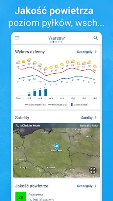 "Prognoza Pogody na 14 Dni - Meteored" dostarcza precyzyjne prognozy pogody dla Polski. Ulubiona aplikacja miłośników meteorologii, oferuje szczegółowe raporty, radar deszczu, alerty i 14-dniową prognozę opartą na najlepszym modelu. Nie pozwól, by pogoda Cię zaskoczyła.
